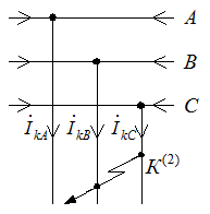 Характеризуется граничными условиями:I(1,1)KA=0 (22)U(1,1)KB=U(1,1)KC=0 (23)Учитывая уравнения (22) и (12):IA=IA1+IA2+IA0=0=>IA1=-(IA2+IA0) (24) Из разности второго и...