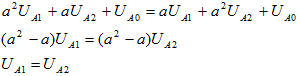 Фазные напряжения в месте короткого замыкания по уравнениям (13) с учетом граничных условий (UB=UC)  и уравнения (21):