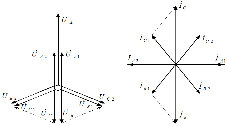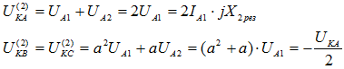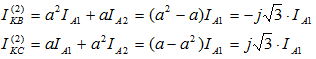 I(2)KA=0; I(2)KB=-I(2)KC; U(2)KB=U(2)KC.